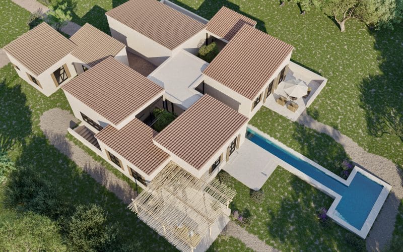 Diese außergewöhnliche Designer-Finca entsteht auf einem rund 25.000 m² großen, sanft ansteigenden Grundstück in den malerischen Hügeln bei Selva – mit spektakulärem Blick auf die imposante Serra de Tramuntana. Inmitten eines mediterranen Obstgartens mit Feigen-, Mandel-, Orangen-, Zitronen- und Johannisbrotbäumen verschmilzt das Anwesen mit seiner natürlichen Umgebung auf elegante Weise.