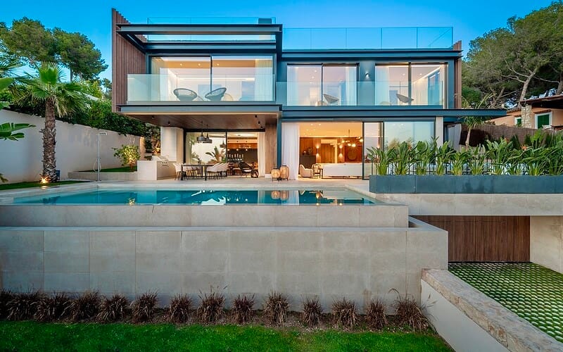 In einer der exklusivsten Wohnlagen an der Südwestküste Mallorcas präsentiert sich diese neu gebaute Villa als Ausdruck zeitgenössischer Architektur, kompromissloser Qualität und mediterraner Lebensart. Die Immobilie liegt in einer sonnenverwöhnten Südlage und genießt eine leicht erhöhte Position, die großzügige Lichtverhältnisse sowie einen freien Blick über das Mittelmeer ermöglicht. Gleichzeitig befinden sich Palma, Puerto Portals, feine Strände und internationale Anbindungen in komfortabler Nähe.