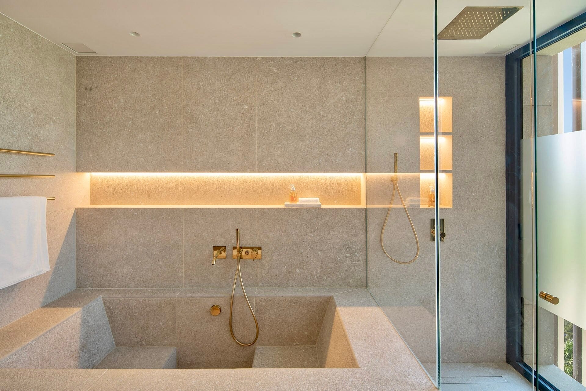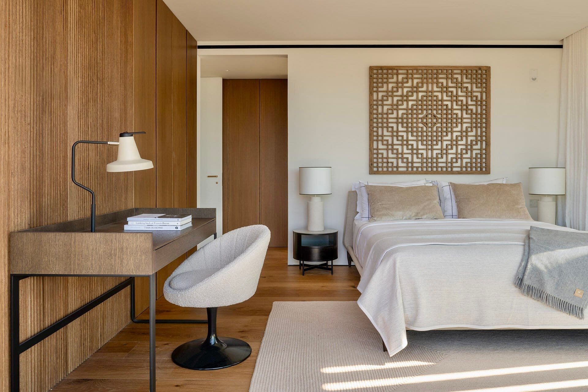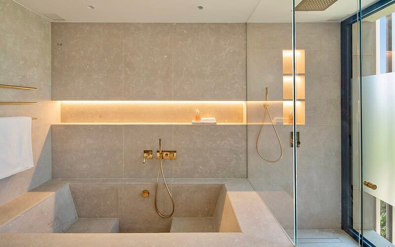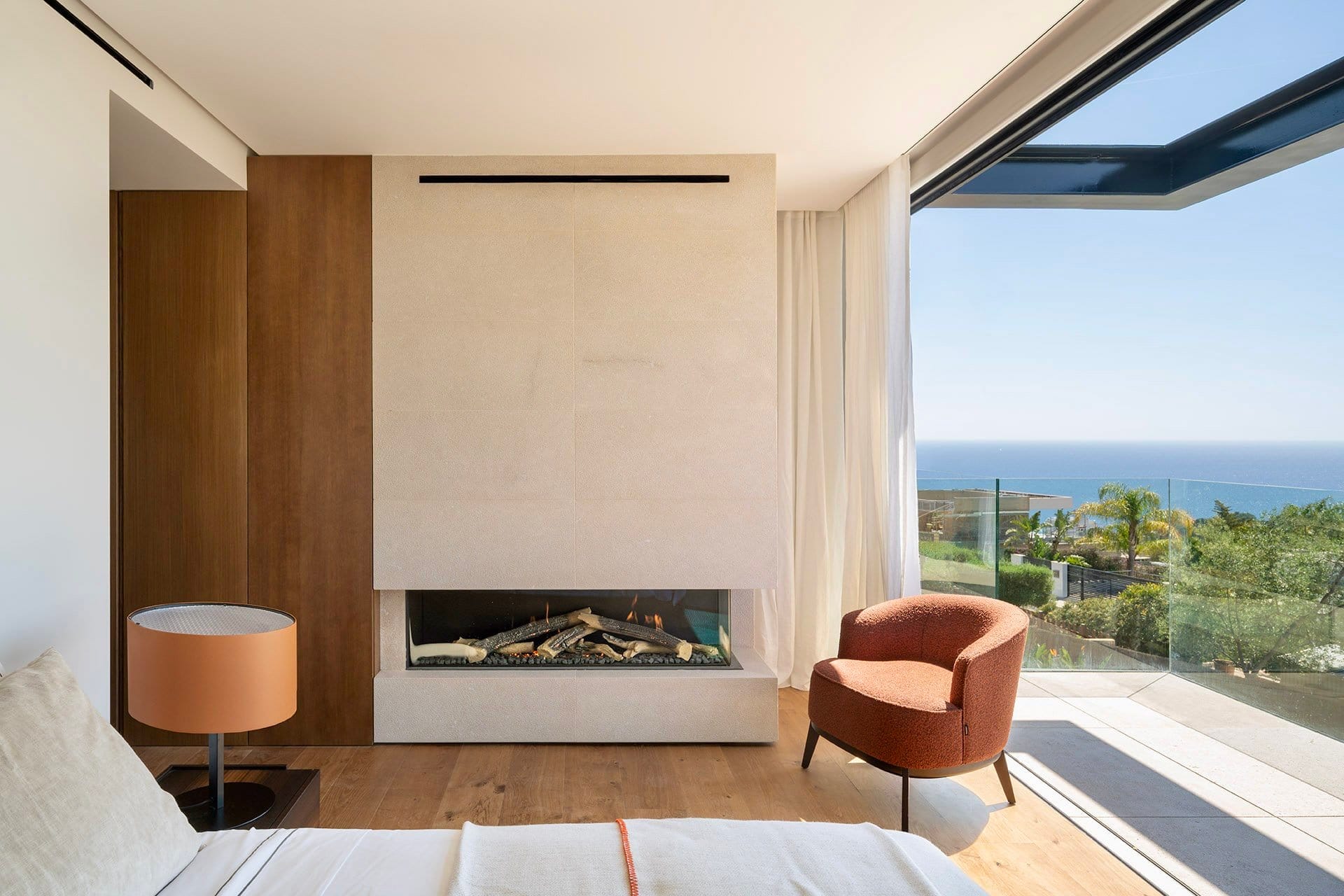 Vier großzügige Schlafzimmer mit jeweils en suite ausgestatteten Bädern bieten ein hohes Maß an Privatsphäre und Wohnqualität. Die Master Suite verfügt über eine eigene Terrasse mit Meerblick und profitiert besonders von der südlichen Ausrichtung und den langen Sonnenstunden. Jeder Raum ist klar strukturiert und auf ein elegantes, dauerhaftes Wohnerlebnis ausgelegt.